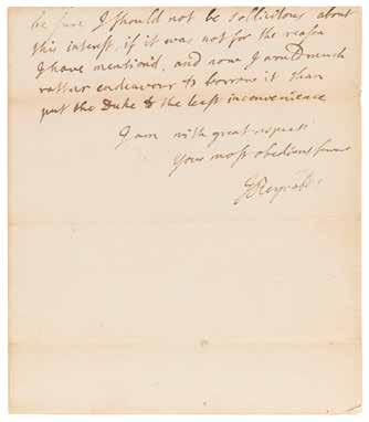 168. Robert R. Livingston Autograph Letter Signed. Lawyer, politician, and diplomat from New York (1746-1813) known as ‘The Chancellor,’ who was one of the five original drafters of the Declaration of Independence. He later served as U.S. minister to France, negotiating the Louisiana Purchase in 1803. Scarce ALS, signed “Rob. R. Livingston,” one page, 7 x 8.5, 1798. Handwritten letter to Samuel Jones, in part: “I have just rec’d a letter from my mother pressing me to apply for Mr. Scott’s home if it is to be sold & if his widow does not wish to keep it. The state of her…makes her wish to remove from Queens Street to a nicer part of the town. She leaves the rent to your discretion as the house will be in careful hands.” Matted and framed with an engraved portrait bearing a facsimile signature to an overall size of 19.5 x 15.5. In very good to fine condition, with some faint toning, and writing showing through from the back. Starting Bid $200