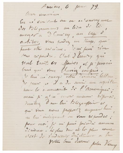 5. John Adams Autograph Letter Signed, Returning from France in 1779. ALS signed “John Adam[s],” one page, 7.75 x 14.25, February 16, 1779. Handwritten letter from Passy to M. de Sartine, in part: “By the late Appointment of a plenipotentiary at this Court, I am [left at] Liberty to return to my own Country, a[s it does] not appear that next Congress have any furt[her ser]vice for me to do in Europe. I therefore [wish] to return, as soon as possible. But the E[nglish] have heard so much of me, in former Times, [that] I should be very loth to be exposed to their [good-] will. If it is in your Excellency’s Intent[ion] therefore, to send any Man of War, to [any] Part of the United States, I would ask the [favor] of a passage for myself, my little Son, [and] one servant.” In very good to fine condition, with trimming to the right side, affecting both the text of the letter (completed in here in brackets) and the end of the signature, and horizontal folds reinforced on the reverse. John Adams served as envoy to France from November 28, 1777, to March 8, 1779; he announces his departure by this letter, and would arrive back in Massachusetts on August 2nd. In late 1779, Adams would be appointed as the sole minister charged with negotiations to establish a commercial treaty with Britain and end the war. Starting Bid $200