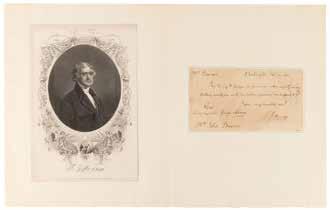 10. James Monroe Handwritten Draft Letter on the Constitution and National Bank. Lengthy unsigned handwritten draft of a letter by James Monroe, three pages on two adjoining sheets, 8 x 10, March 1831. Handwritten draft outlining his views on the establishment of a national bank, penned as the ‘Bank War’ of Andrew Jackson’s administration began to take shape. In part: “Your letter touches on a very interesting subject, one which is of the highest importance to the national prosperity and to the success of our free system of government itself. The great object of your inquiry is, whether a bank of the government, founded on the public’s revenue, and under its exclusive control is to be preferred, for all the national purposes specified, to such a bank as that which now exists, founded partially on the stock of individuals and exclusively under their control. I have no hesitation in declaring it my decided opinion that the latter is to be preferred…A bank of individuals founded on their stock and under their control,