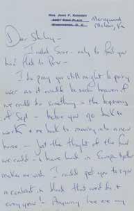 Signed (1954) - “The Kennedys have rented a house near Cannes for August”. ALS signed “xxoo, Jackie,” four pages on two sheets, 5 x 7.75, personal ‘Mrs. John F. Kennedy’ letterhead, postmarked on July 20, 1954. Addressed from the Merrywood estate in McLean, Virginia, a handwritten letter to close friend Shirley Oakes, in part: “It would be such heaven if we could do something in the beginning of Sept, before you go back to work + me back to moving into a new house…Anyway here are my plans — The Kennedys have rented a house near Cannes for August. They want Jean + I to spend the last week there…But then for the next 2 weeks I don’t know what to do…Would you like to meet me in Rome…Then we could drive to Austria…I wish you would move in with us next year + be Jack’s legislative assistant!” In fine condition. Accompanied by the original handaddressed mailing envelope.
