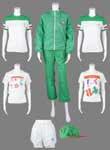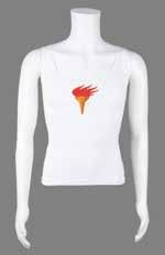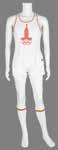 long-sleeve runner’s jersey, with “Relais de La Flamme Olympique, Paris 2024” emblem on the chest and large 2024 logo across the shoulders, and white athletic pants with the 2024 relay emblem on the upper thigh.