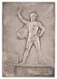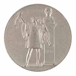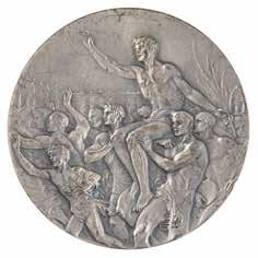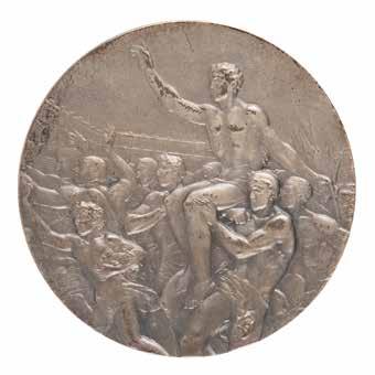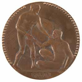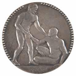 Sponsored by Evangelis Zappas (1800-1865), a Greek patriot, businessman, and philanthropist, the Zappas Olympics was a series of athletic events held in Athens designed to reintroduce a modern version of the ancient games into the nation of Greece. The first was held in 1859, while the other three—1870, 1875, and 1888—were held posthumously in Zappas’ honor. Although not an international event, the Zappas Olympics were significant to the Games of today, as the modern arrangement of gold, silver, and bronze medals serving as awards for first, second, and third prizes was established according to the original plan of the Zappas Olympics. A scarce and desirable medal, with only 353 bronzes minted for the 1870 event. Starting Bid $200