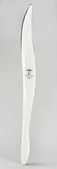 3032. Vancouver 2010 Winter Olympics Torch - From the Collection of IOC Member James Worrall. Official Vancouver 2010 Winter Olympics torch that was presented to Canadian Olympic administrator James Worrall. Constructed of stainless steel, aluminum, and sheet molding, the torch measures 37˝ in length and 3˝ at its widest point. Manufactured by Bombardier, the torch features a shape and contours that represent the lines made by snow and ice sports, and it’s engraved with the motto “With Glowing Hearts / Des plus brilliants exploits,” with the Canadian maple leaf ‘cut-out’ on the opposing side. The Vancouver Games logos are present on either white panel, the upper tips of which show slight separation; the body bears a few light scuffs. Complete with its original torch relay carrying bag. Starting Bid $200