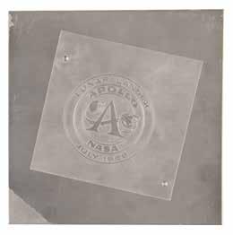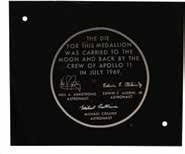 - an unflown silver-tone Apollo 1 Fliteline medallion, approximately 1.25˝ diameter, with the front featuring a raised design of the mission insignia, and the reverse featuring the mission name and the last names of astronauts Gus Grissom, Ed White, and Roger Chaffee, set into a circular bezel.