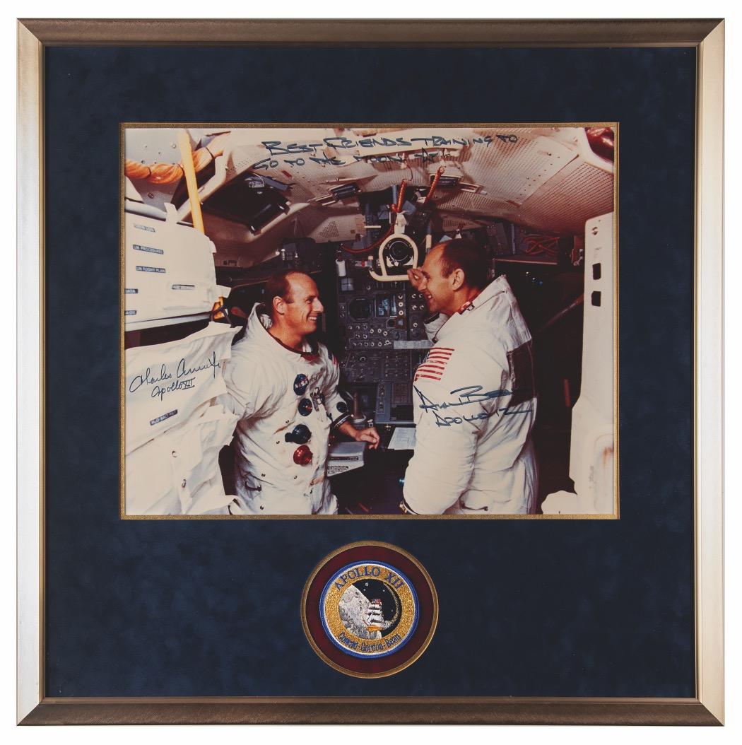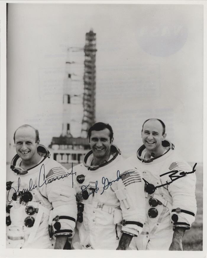 From launch to touchdown, the flight totaled 7 days 22 hours 55 minutes and 15. 5 seconds, a new duration record for manned space flight. Total distance traveled exceeded 2.9 million nautical miles. The astronauts successfully coped with all problems encountered and postflight medical examinations indicated the two pilots to be in excellent physical condition.” Signed at the conclusion in black felt tip by Gordon and in blue ballpoint by Conrad. In fine condition, with some old tape residue to the top edge. Starting Bid $200