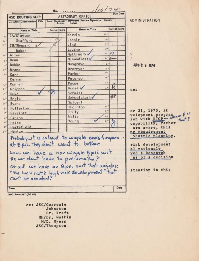 Perhaps most interesting of the myriad Mercury-related letters are those addressing pilot Donald ‘Deke’ Slayton, who, on March 15, 1962, two months before the launch of the Mercury-Atlas 7 mission, was medically disqualified from the flight due to symptoms of atrial fibrillation; he was replaced on the mission by Scott Carpenter. Douglas was opposed to this decision and disagreed with several of his medical colleagues regarding Slayton’s grounding; his stance ultimately led to the nonrenewal of his NASA detail. In Slayton’s autobiography, published posthumously, he wrote that Douglas ‘and everybody else had agreed that it should have no effect on my status whatsoever. Everything was noted down in my records, and that was that.’