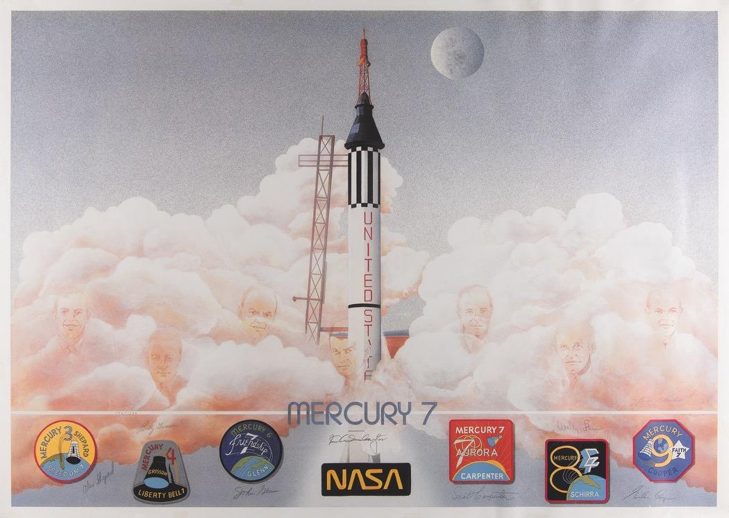 Extremely rare, fully signed rocket launch poster “from the Mercury