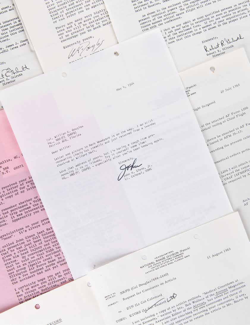 4012. Project Mercury: William K. Douglas Correspondence Archive of (100+) Letters - Containing TLSs from John Glenn, Robert Gilruth, Henry Luce, and Many Others. Fascinating correspondence archive of Dr. William K. Douglas, a U.S. Air Force lieutenant colonel who, on April 1, 1959, was selected as the personal physician for America’s first astronauts, the ‘Mercury Seven.’ Douglas was the astronauts’ physician for the next three years, working out of Florida’s Patrick Air Force Base for the Office of the Assistant for Bioastronautics at the Air Force Missile Test Center. His daily pattern of life would simulate that of the seven astronauts and he would endure much of the rigorous testing they were subjected to, leading some to call him the ‘eighth astronaut.’ Dating to the early and mid-1960s, this archive contains over 100 TLSs between Douglas and a wide array of his colleagues from various aerospace and American military branches.