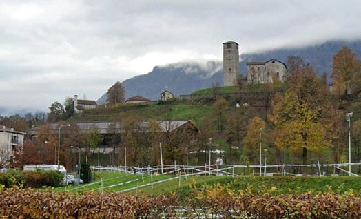 Il fronte nord del colle risulta di notevole bellezza paesaggistica, grazie anche alla silhouette del castello ed alla forma armoniosa del colle delle capre su cui poggia. Tale bellezza è stata concretizzata anche in un dipinto, riportato nell’ immagine , realizzato da un artista a noi sconosciuto. Non da meno è il disegno di Lodovico Toeput, riportato nell’immagine , che mostra la relazione incredibile tra l’insediamento urbano, il castello in posizione dominante, e le Vette che proteggono la città.
