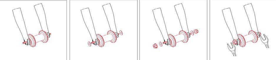 Screw the nuts back into place on both ends of the axle and tighten the locking screws. Figure 6.