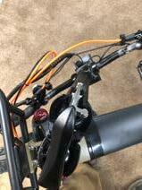 LCD Screen: Retrieve the screen display and line it up with the center of the handlebars. Secure it in place so the two loops each close completely. Tighten the two screws and move the screen to a comfortable position for the rider. Figure 10.
