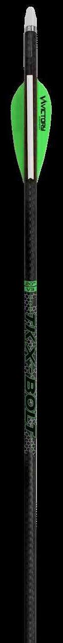 Engineered with Advanced 3K Carbon Weave Technology that minimizes torsional deflection, the TKX-Bolt Crossbow bolts provide the accuracy and impact power hunters depend on. These bolts excel in arrow recovery speed, penetration, and sustained momentum. The EFOC (Extreme Forward of Center) design enhances in-flight stability, ensuring consistent performance with every shot. Equipped with durable 100% brass inserts and Victory’s Catch Nock, the TKX-Bolt offers versatility and strength. Enhanced by Victory’s Spine Alignment process for unmatched precision, these bolts also feature a stiffer spine for increased accuracy and are 100% hand-fletched for pinpoint quality every time.