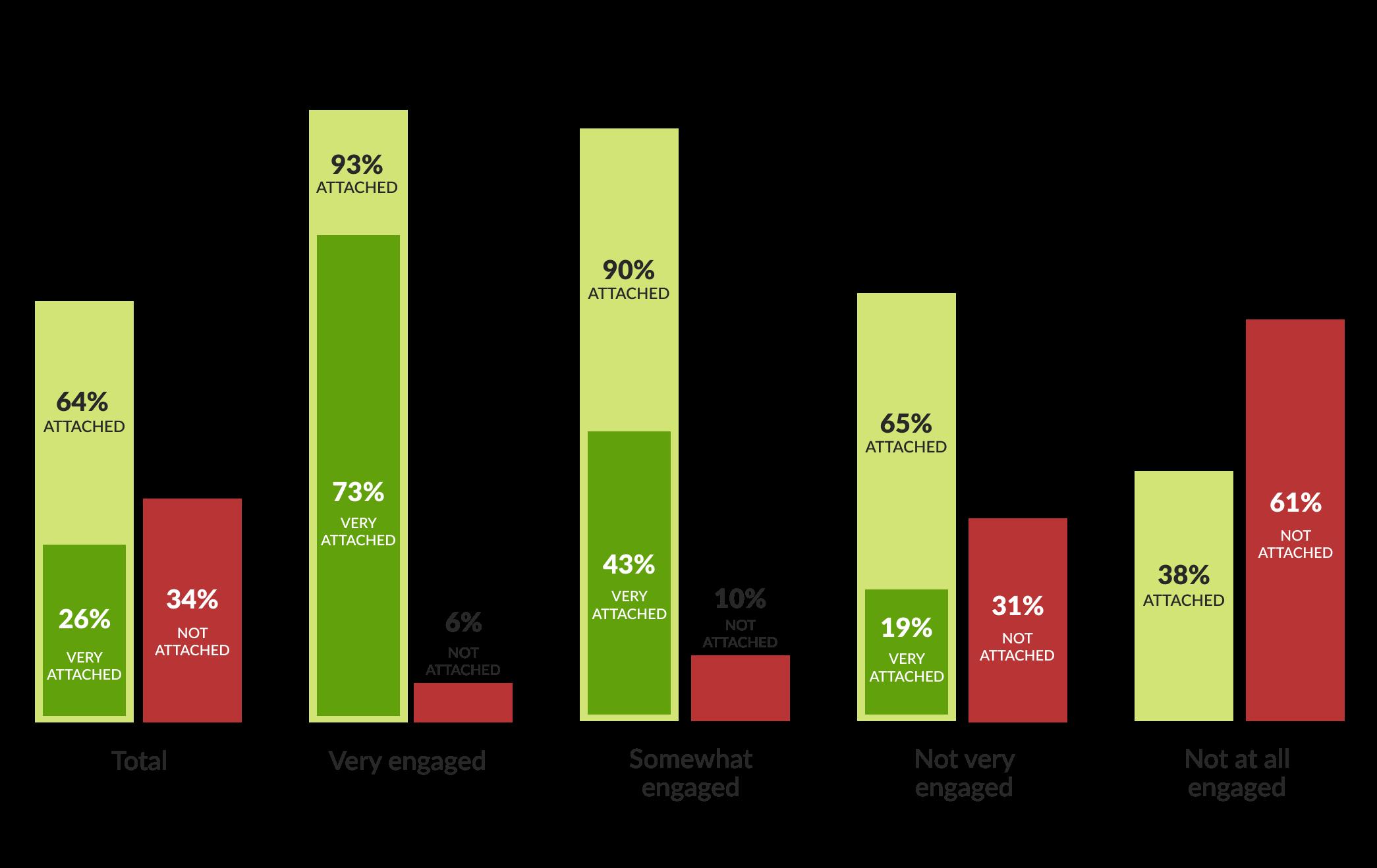 Most have some attachment to Israel, but it is stronger among those who are more engaged.
