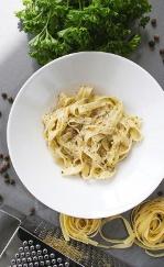 Blanda i Krossad skinka och Kyckling & bacon kross i formen. Lägg till 1–2 dl vatten om det verkar torrt. Fortsätt tillaga i ytterligare 20–30 minuter, eller tills pastan är färdig.