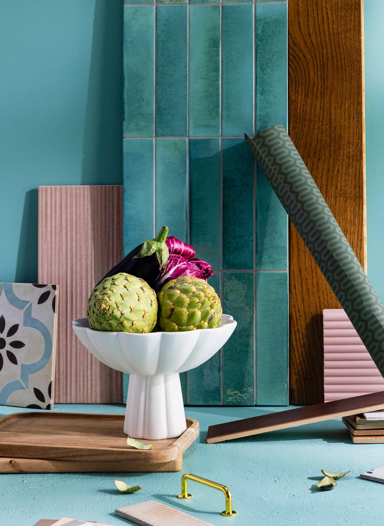 TEE KANNEN TYYLI: Seinässä maalisävy Tikkurila J442 • Lume-seinä- ja lattialaatta turkoosi 6 × 24 cm, 85,93 €/m² • Art seurat -lattialaatta 22,3 × 22,3 59,21 €/m² • Urban aquarel Aalto kuviolaatta 20× 40 roosa 43,42 €/m² • Cello Brown Sugar -kalanruotoparketti 70,95 €/m² • Cello Sormi -sisustuspaneeli, maalattu Tikkurilan sävyllä Pirtelö, 15 × 95 × 2370 mm, 47,47 €/m² • Scandinavian Designers III -kuitutapetti 110,32 €/rl • Cello Memoria -kuviolaatta, 15 × 15 cm, 67,71 €/m² • Beslagsboden-kalustevedin, 96 mm messinki, 5,01 € • Tuotteet K-Rauta. Suositusvähittäishinnat voimassa 1.9. alkaen. Myhome Luode -tarjotin 32 × 22 cm, 9,99 € • Hemtex 24h Loa -kulho 24,99 € • Tuotteet K-Citymarket.