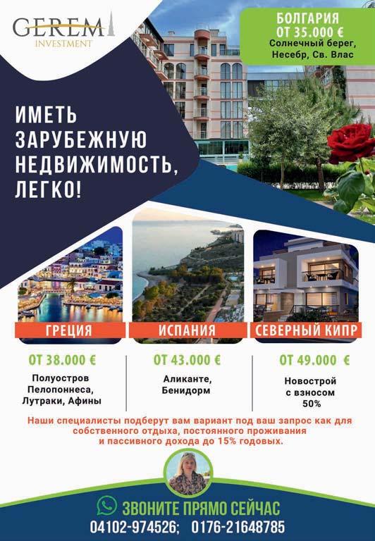 Anzeigenabteilung: Y.Zamorin, A.Kreida Tel.: + 49 (69) 759 369 73 + 49 (69) 408 097 131 Fax: + 49 (69) 759 369 74 Mob.: + 49 176 241 603 87