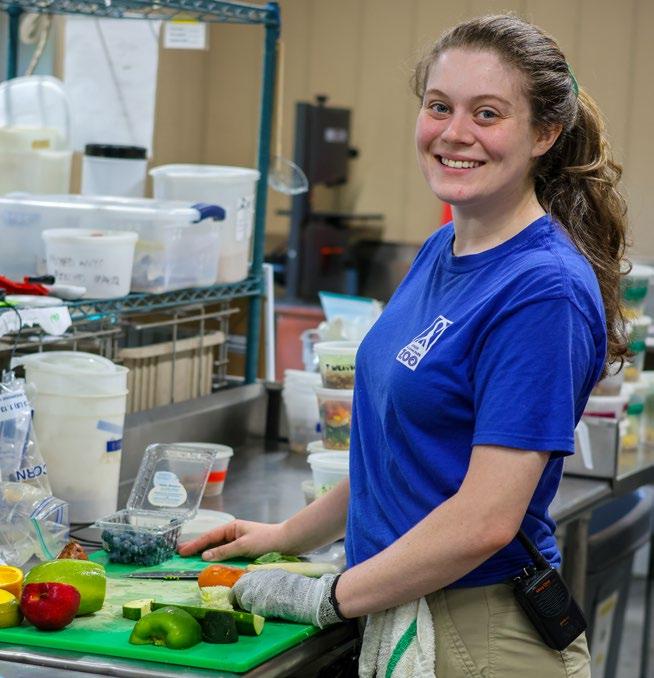 Zookeepers become culinary experts, preparing specialized diets mimicking what animals eat in the wild. Chopped fruits, leafy greens, and even specially formulated biscuits are all crucial to keeping well-balanced diets for our animals. Diana (pictured) is one of the keepers behind the scenes in the commissary, prepping nutritious meals for all of the animals in our care daily!