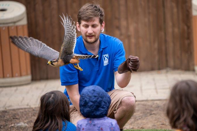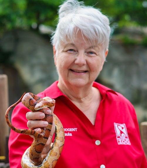 arrangement of food, water, shelter and space, based on a combination of zoological science and practical problemsolving. Daily public interactions to share their knowledge and advance the Zoo’s mission to empower our guests to conserve wildlife and wild places fit into the mix. And, yes, zookeepers accomplish all that while also spending much of their day ensuring a clean, safe environment for every creature under their care.