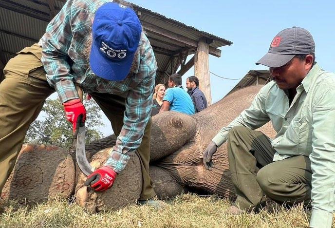 nearly two weeks at the National Trust for Nature Conservancy’s Elephant Health Camp, educating mahouts (elephant handlers) and elephant owners on the best practices for maintaining healthy elephant foot care. He provided handson training to properly trim, treat, and regularly care for elephants’ feet.