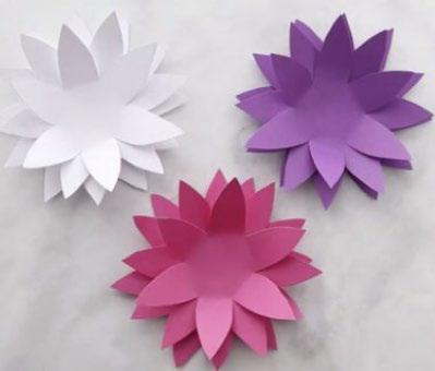 3. Make your water lilies. We made one white, pink and purple flower. Cut out the template and trace and cut out 4 flowers for each water lily. You can get the free template here!