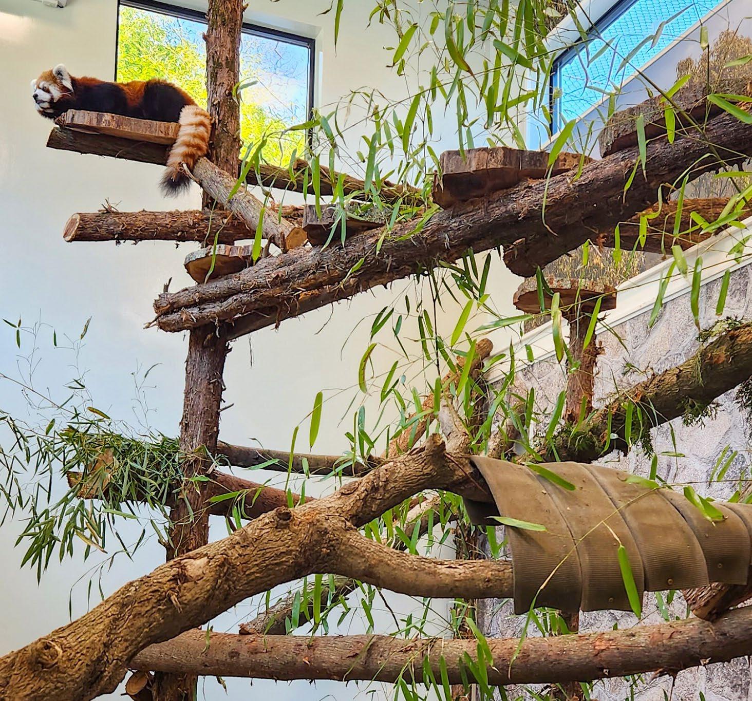 The outdoor habitat also spans two stories and features an enriching landscape with climbing structures and multiple viewing angles, allowing visitors to observe the red pandas from various perspectives.