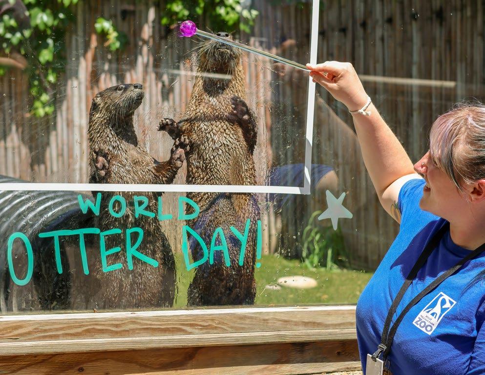 For example, our zookeeper, Khaz, has been working with our North American river otters on positive reinforcement training for vaccine administration. Khaz has helped train the otters to “place” in a vaccination tube and press their hip against the opening for easy access to administer their vaccines. The river otters are rewarded with plenty of treats for these beneficial behaviors!