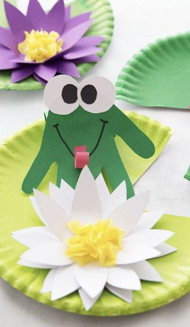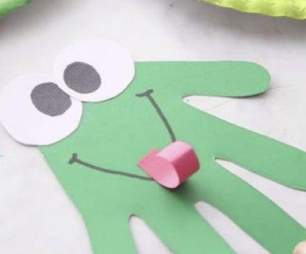7. Glue your handprint frog to the roll on the paper plate so it stands up.