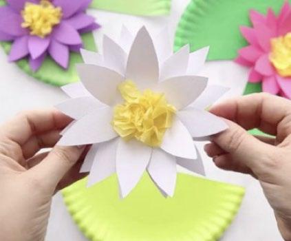 1. Cut a shape like a pie piece out of the paper plate to make it look like a lily pad.
