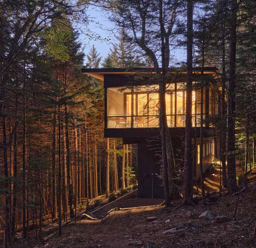says Pattey. One can find the “space” one needs. On the lowest level, you can ground yourself in a good book. In the living room, it is easy to be swept away on the quiet morning air or, from an outdoor deck, lifted by the stars.