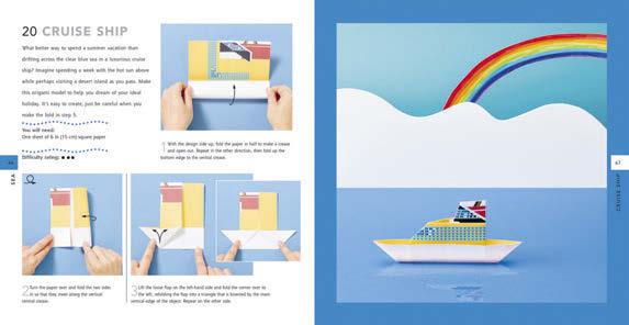 Fold 35 fun transport-themed origami models with this exciting book from bestselling author Mari Ono, featuring 50 custom sheets of origami paper. From cars to planes, each design in Origami Transport is a fun and fast way to get from A to B in the world of origami—take a trip through the Japanese countryside on the iconic bullet train, a trek across the Sahara desert on a camel, or an exhilarating race down the road on a stylish motorbike. The projects include easy-tofollow, step-by-step instructions, complete with photos and helpful arrows that clearly indicate where to fold the paper. To guide you through your paper-folding journey, every design is assigned a skill rating, so you can begin with a straightforward model and, as your confidence grows, progress to more intricate creations. Origami Transport includes 50 custom-designed sheets of origami paper, so you can jump right into crafting—ready, set, fold!