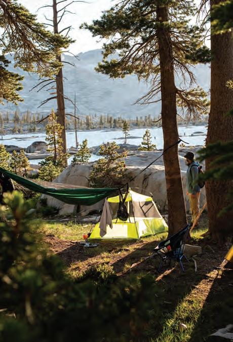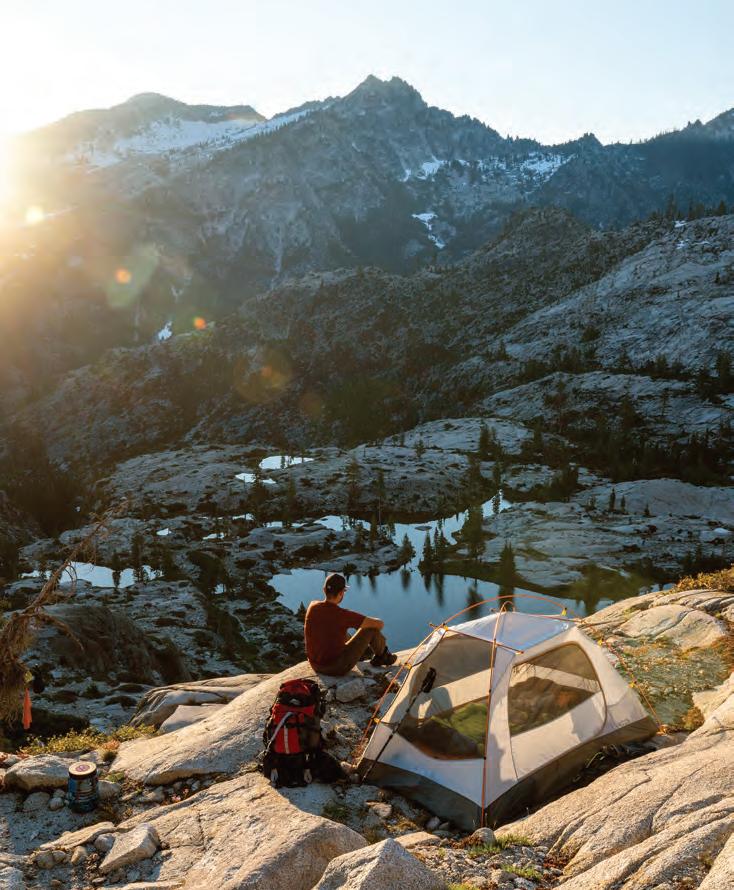 About backpacking: Pack as light as possible. Splurge on a superlight pack—and a featherweight sleeping bag, says Gabe. “When you’re going up 150 switchbacks or longer than 5 miles, you’re going to wish you didn’t bring that cheap sleeping bag that weighs 5 pounds or all those extra snacks and clothes you think you might need.” With a sleeping bag and pad that weigh less than a pound each and a lightweight tent, even with a few luxury items, he can keep his pack to about 25 pounds for a weekend trip. There’s a lot you can live without for a few days, he says.