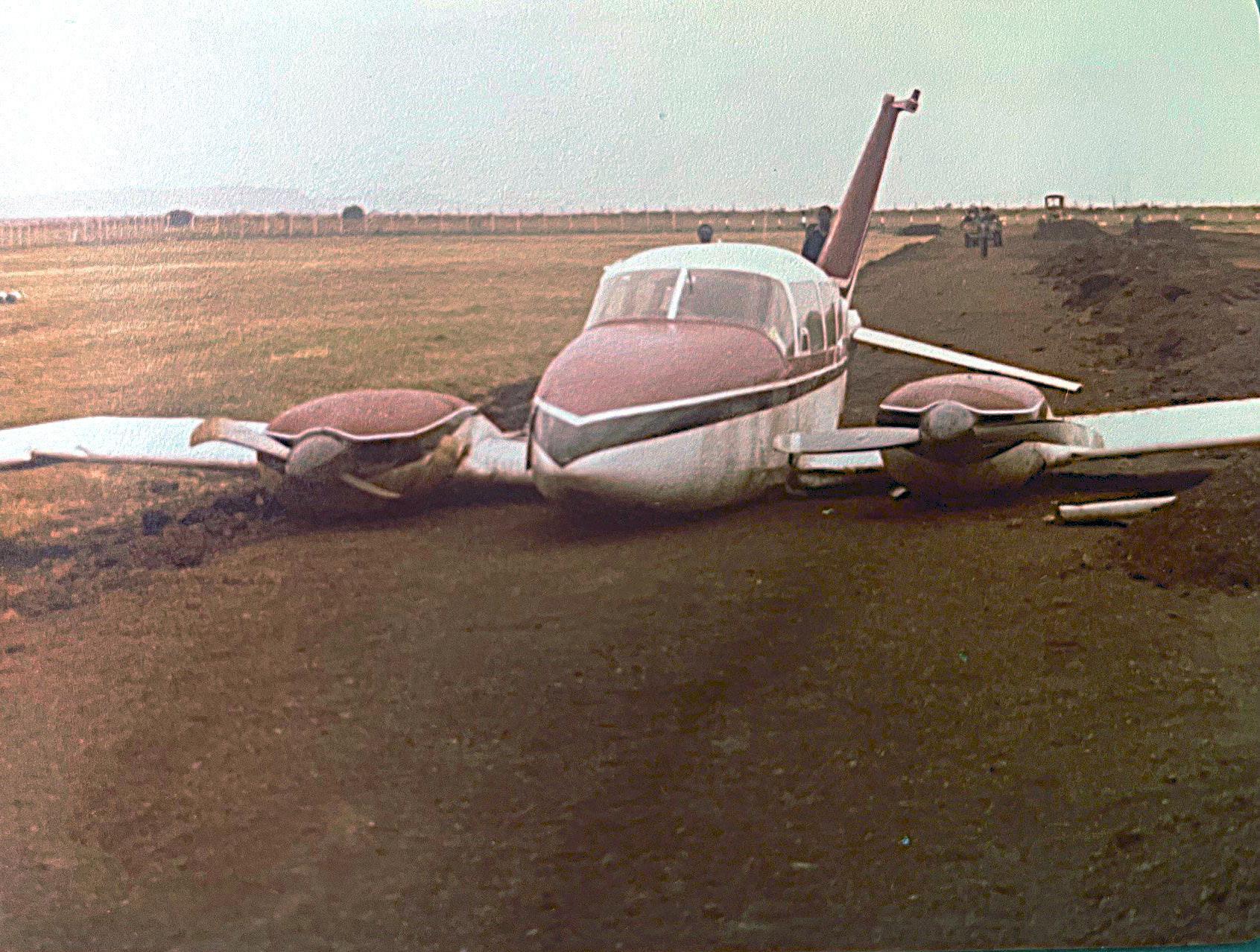 The back of my eyes prickle with unshed tears at the sight of ARN lying impotently on his belly. The initial bang must have been when the undercarriage was ripped off. Thank god I was in the Aztec as not many planes would’ve been able to survive this.