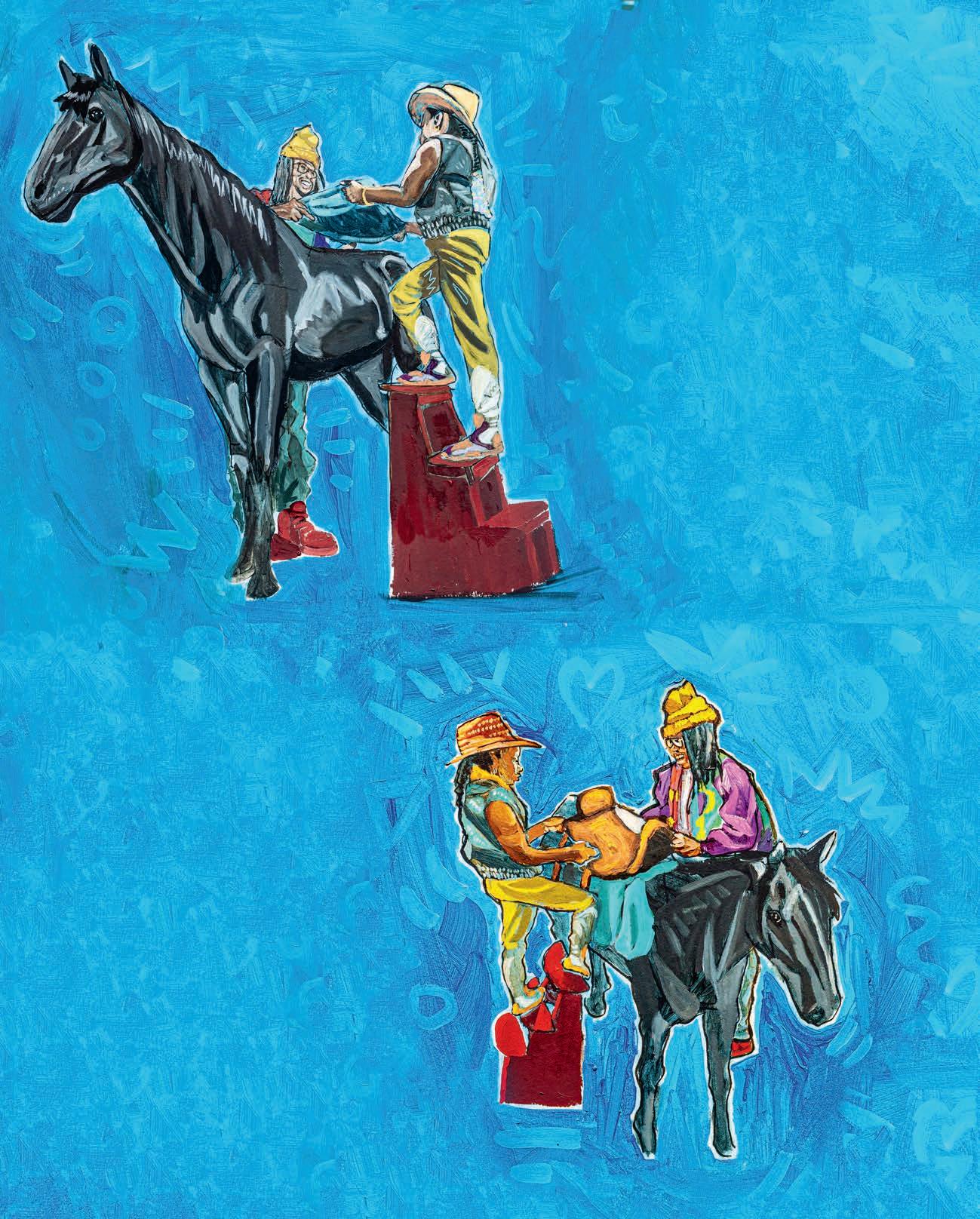 I gather all the tack and hand Daddy each piece— I know the right order because I’ve been practicing.