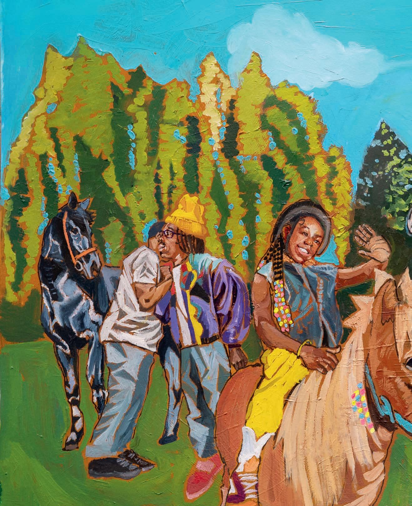 Clover is steady and keeps trotting along, but I can tell Power likes to be admired— she tosses her black mane and neighs, showing off.