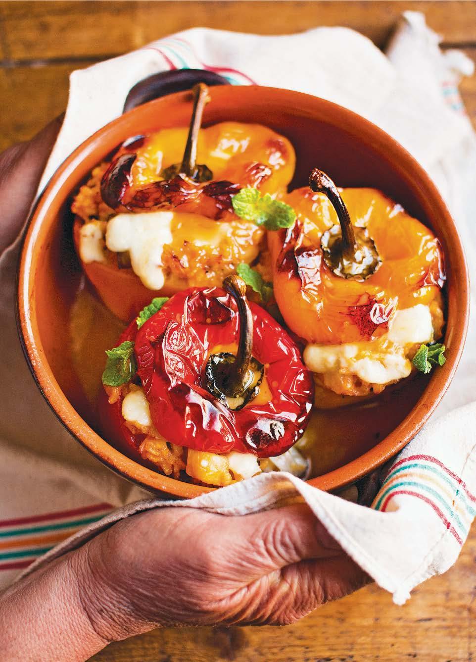 This traditional dish features roasted peppers stuffed with a vibrant, flavorful risotto and fresh mint. A recipe from his book Slow: Easy, Comforting Italian Meals Worth Waiting For