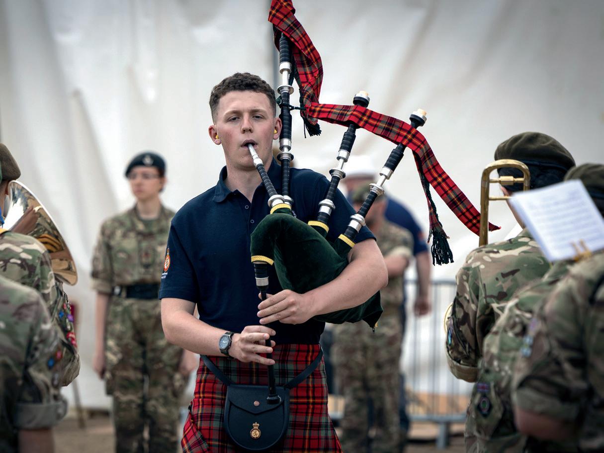 • Cadets can achieve recognised qualifications including BTEC First Diploma in Music (equivalent to a GCSE), Associated Board of the Royal Schools of Music (ABRSM) qualifications and Scottish Qualifications Authority (SQA) piping and drumming awards.