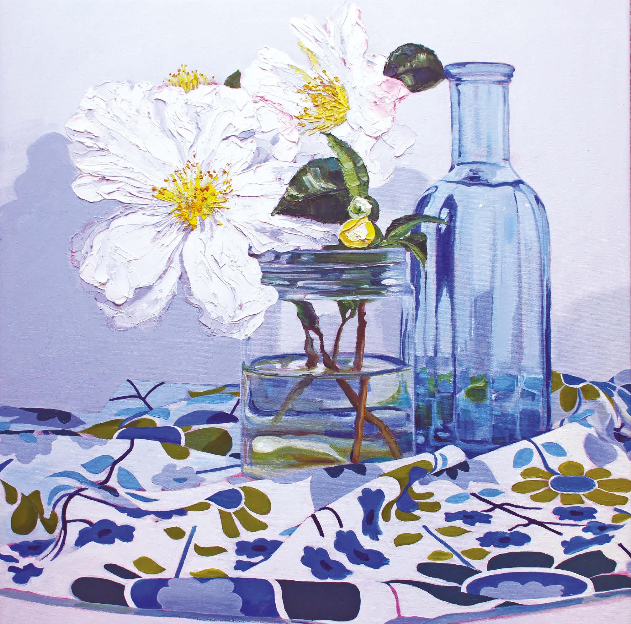 CAMELLIA AND COLLECTED BOTTLE BY JENIE FAWCKNER, Art Nuvo