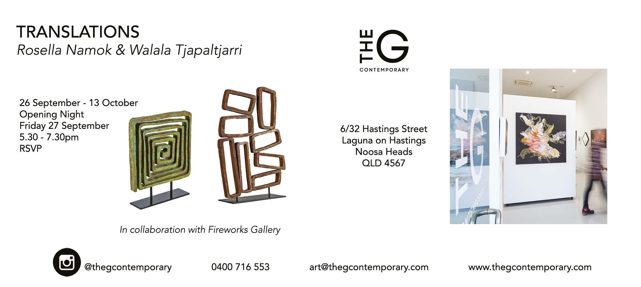 This is an opportunity to discuss and consider the translation from twodimensional works into limited edition bronze sculptures by renowned First Nation artists Rosella Namok and Walala Tjapaltjarri, in collaboration with Brisbane’s Fire works Galler y Opening night is on Friday, September 27 from 5.30pm to 7.30pm. when September 26 to October 13 where The G Contemporar y, 6/32 Hastings Street , Laguna on Hastings, Noosa Heads. 0400 716 526 or thegcontemporar y com