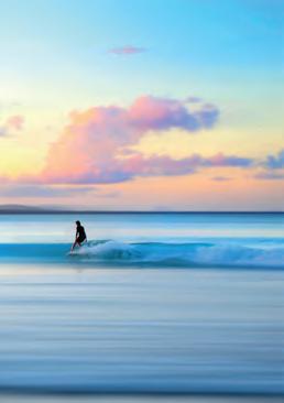 Captured at Noosa National Park, this photo is one of my favourites. Aerial shots can reveal patterns and textures from the churning sand, which are not visible from land, making them feel almost abstract or impressionistic. We are lucky to have so many point breaks on the Sunshine Coast that create a natural gradient of blue tones between the shallow and deeper water.