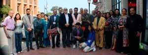 (L-R) J.C. Kapoor, Minakshi Kapoor, Actor Apurva Sharma, Girish Ray & Usha Ray, Mehul Adhikari, Hemendra Shah, Hitesh Gandhi, Actor Producer Sean Patel, Sunil Shah, Actor Prashant Modi, Ramesh Punatar USA Film Productions, Naresh Shah, Altaf Bukhari National Promoter, Bharti Desai, Afsha, Sanskriti Sharma, Farhana Bukhari & Zahid Khan . Sitting in front actress Sachi Patel & actor Josh Patel