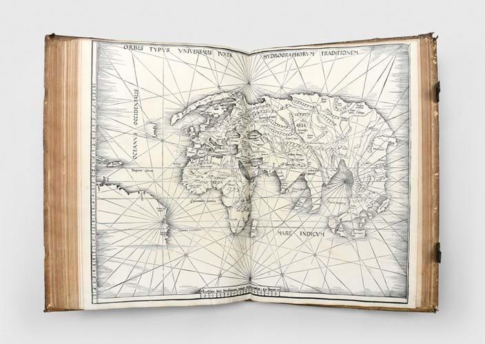 Some exhibitors brought hundreds of titles. Tiburon, Calif., based Neatline Antique Maps had a sparser selection, but what they brought made a big impact. Among the offerings was IgnaceGaston Pardies’ Blobi coelestis in tabulas planas redacti description (Paris, 1683), an original color example of one of the rarest sets from the Golden Age of celestial cartography and Laurent Fries’ 1535 Orbis Typus Universalis Iuxta Hydrographorum Traditionem Exactissime Depicta. According to the dealer’s lot card, it is one of the earliest obtainable maps on the open market to name “America.”