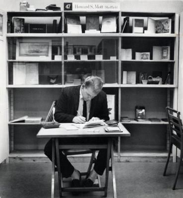 Jeff Hirsch holding one of the most important books in his stall, John Cage’s Notations, which was inscribed to Andy Warhol by the author. Jeff Hirsch Books, Wadsworth, Ill.