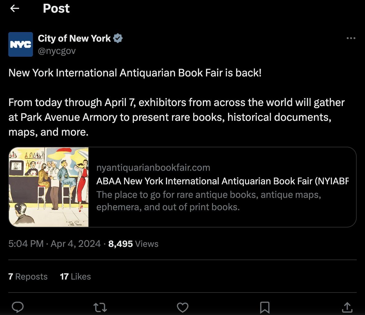 “The premier antiquarian book fair in the world.” – Bruce. E. McKinney, Rare Book Hub , April 1, 2024