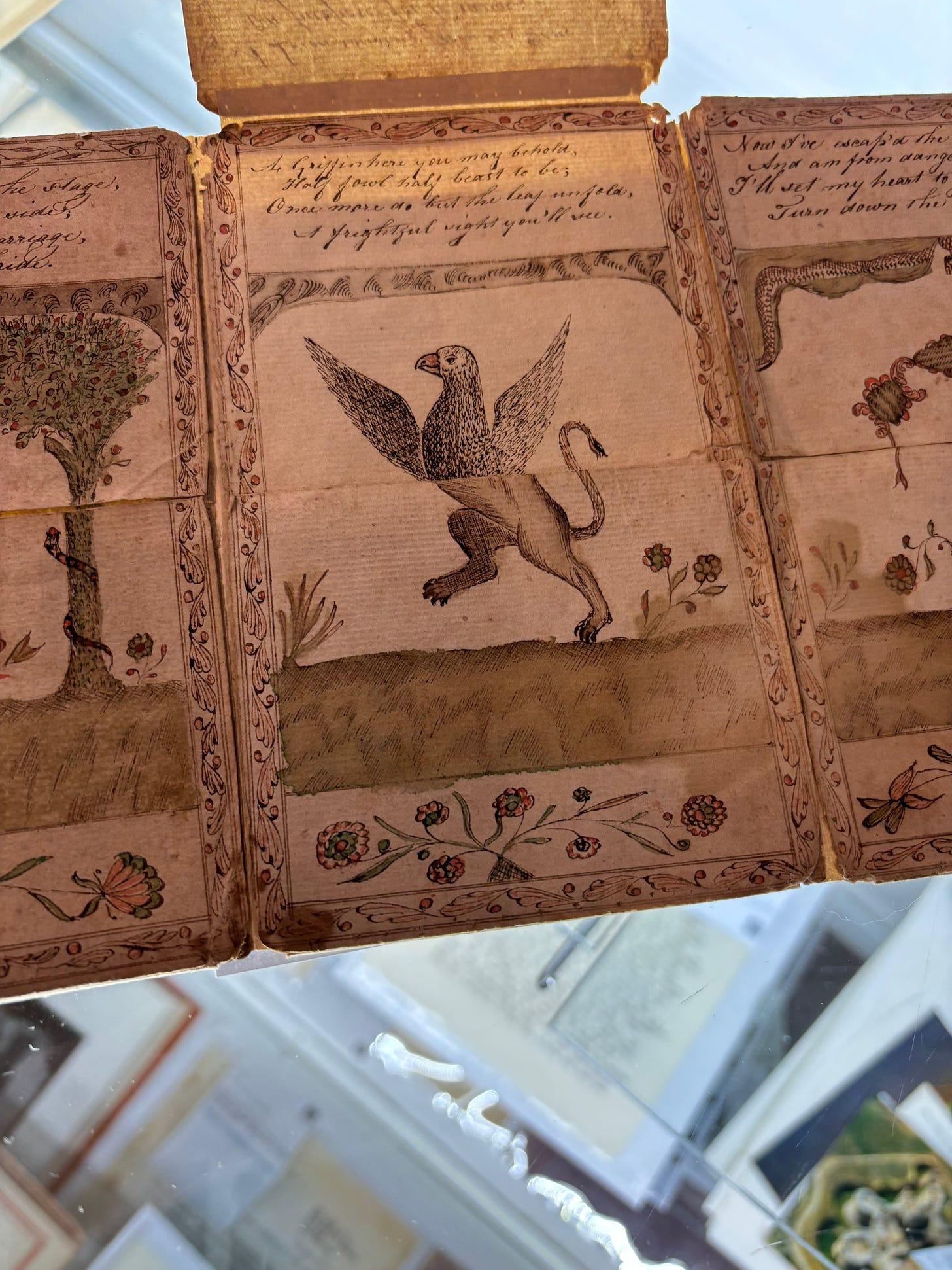 Founded in 2022 by David Rueger, Editio Altera is in Bronxville, N.Y., and specializes in institutional libraries in the US, UK and Europe. For his first time at NYIABF, Rueger brought several notable works, including Gerrit Paape’s Beknopt en duidelijk Onderwijs in het Silhouëtteeren (The Art of Silhouetting), published in Dordrecht in 1792. According to Rueger, there are no copies of this text in any US library. A French Caribbean slave song, Le Paramaribo. Roman Maritime et de Moeurs Créoles, tire de la Guerre de l’Indépendance de l’Amerique du Sud contre l’Espagne by Jean Cathérineau (Paris, 1866) is known in only one US institution, the Library of Congress.