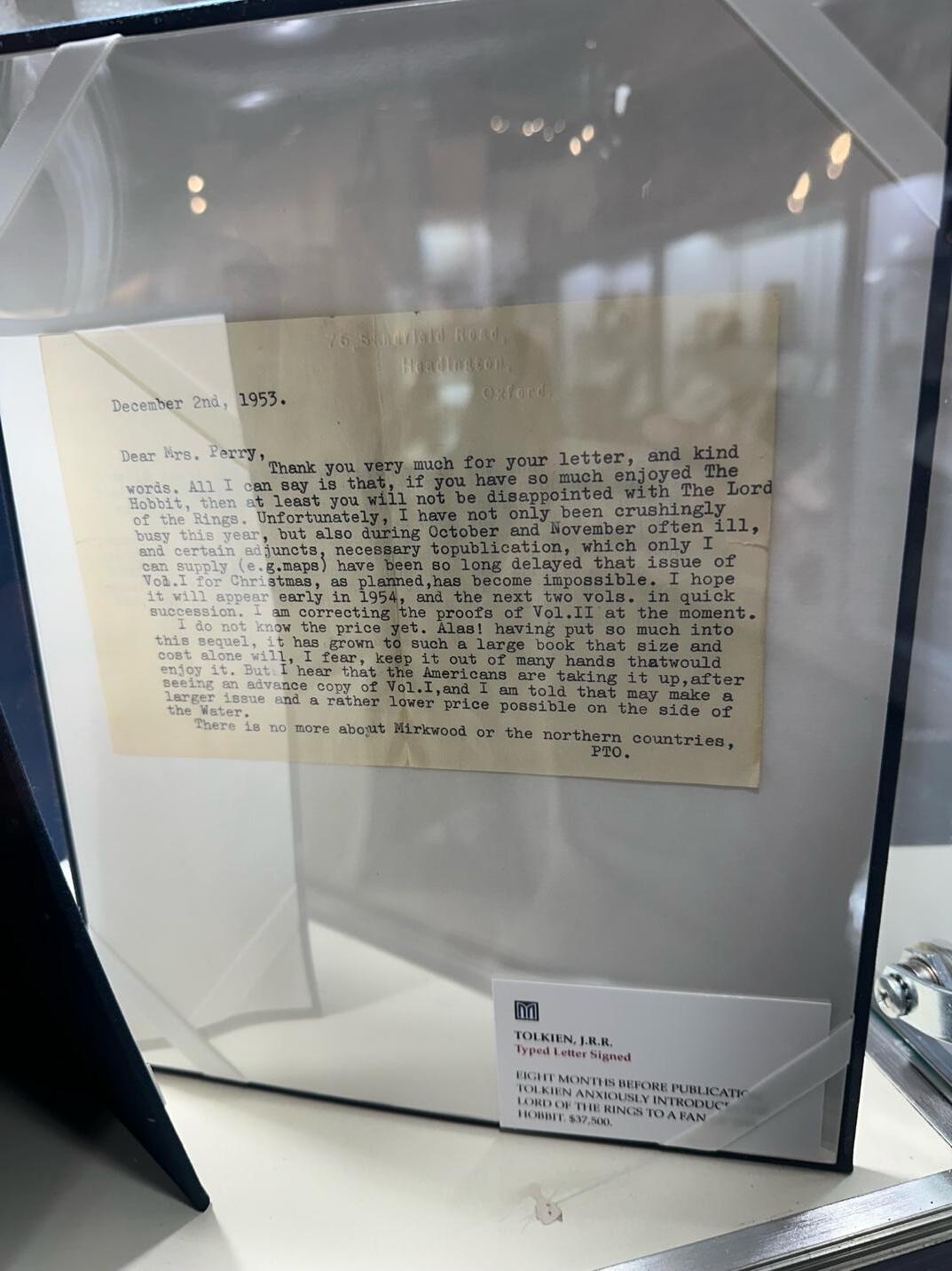 laration of Independence, fronted the London bookseller’s booth. Fans of James Bond would be remiss in not talking with Monica Polisca. The manager of Lucius Books had a complete set of Ian Fleming’s James Bond books. Books by Agatha Christie, George Orwell, Roald Dahl and J.R.R. Tolkien were also among the offerings brought by the York, UK dealer. John Steinbeck fans would have been interested in an archive of nearly 400 letters, postcards and correspondence the author sent to family members over the course of 29 years. According to co-owner Rachel Phillips, the archive spans from the time Of Mice and Men was published in 1937 to 1966, two years before his death. She confirmed the archive came to Burnside Rare Books from Mary Dekker Steinbeck, the author’s sister.