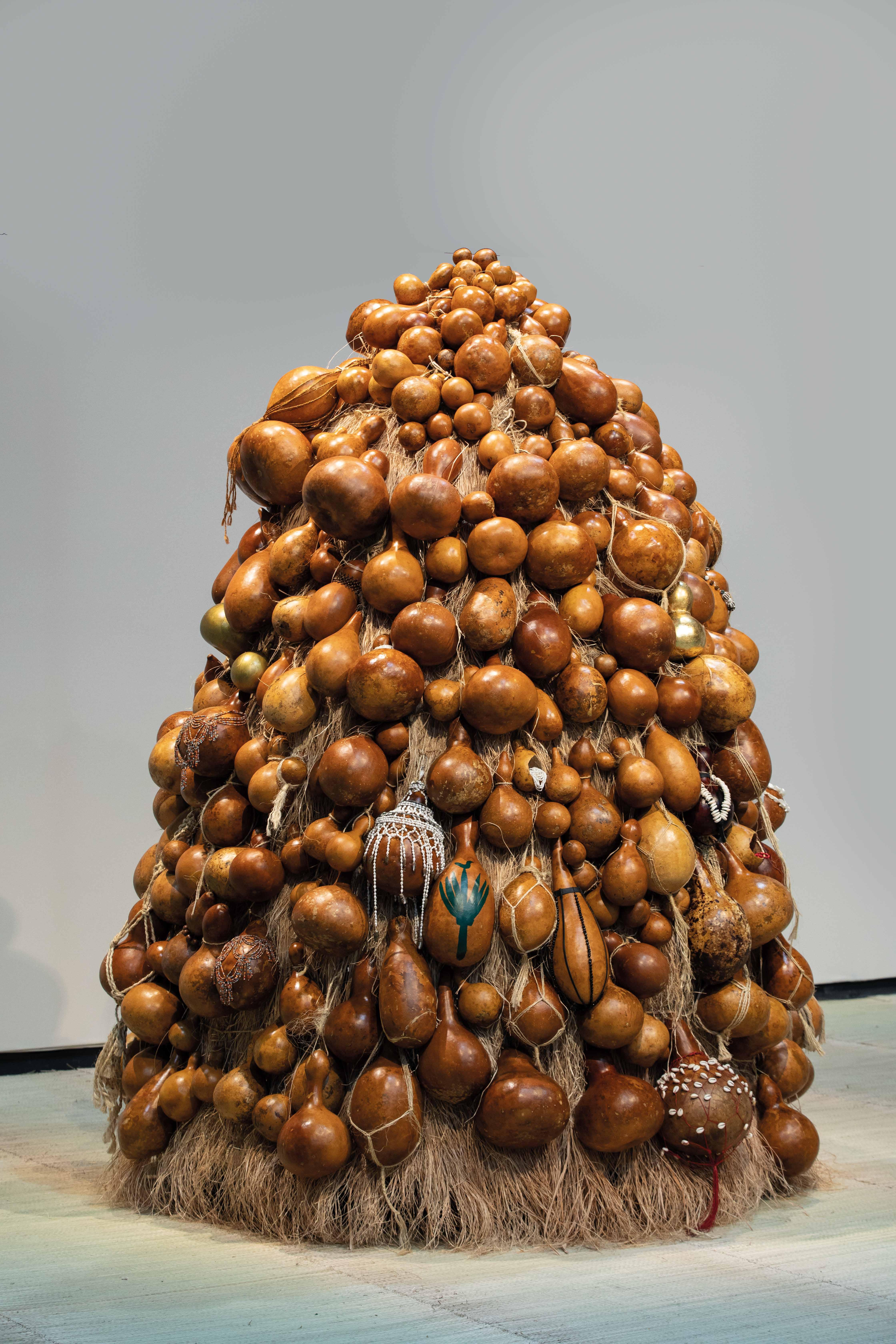 Escultura [cabaças, rendas, tinta acrílica, miçangas, conchas, nylon, metal e espelho] 2022