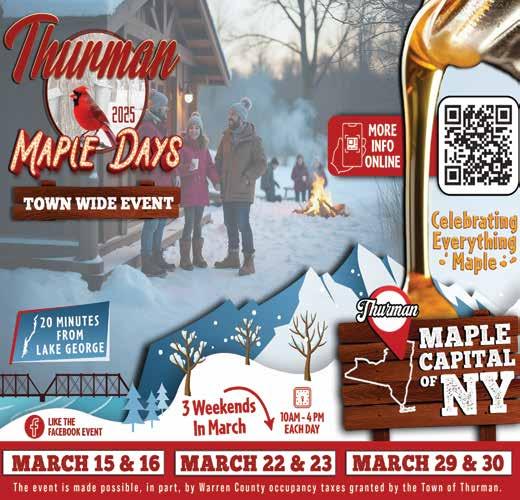 Taking place over three weekends in March, Maple Days returns to Thurman. Beginning on March 15th-16th, visitors can experience a unique selection of maple products and experiences across 10 sites, including Mud Street Maple, which will be offering maple coffee, maple donuts, French toast sticks, and “walking waffles.” For a savory twist, try their maple chili, hot dogs, and slaw dogs. The sugarhouse will be open and visitors can warm up by the fire while roasting maple s’mores, pick up souvenirs, and learn about the process with maplemaking demonstrations.