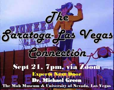 BALLSTON SPA — In part nership with the Las Vegas Mob Museum, the Saratoga County History Center hosts a program via Zoom in September explor ing the connections between Saratoga and the “Sin City.” Mob Museum Trustee and University of Nevada, Las Vegas Associate Professor of History Michael Green will participate in the History Center’s virtual speaker series “Experts Next Door,” at 7 p.m. on Sept. 21. Green discuss some of the famous and not-so-famous links between the two resort towns, after which he will take questions and com ments from the audience. event, to be held on Zoom, is It free, but visit the website www.brooksidemuseum.org.tionalinnovative,HistorytionofandCenternetworkforgood.com.brooksidemuseum.TheSaratogaCountyHistoryisdedicatedtopreservingsharingthediversehistoriesSaratogaCounty.InadditoBrooksideMuseum,theCenteroffersavarietyofexciting,andeducaprogrammingonline.Formoreinformation,goto: