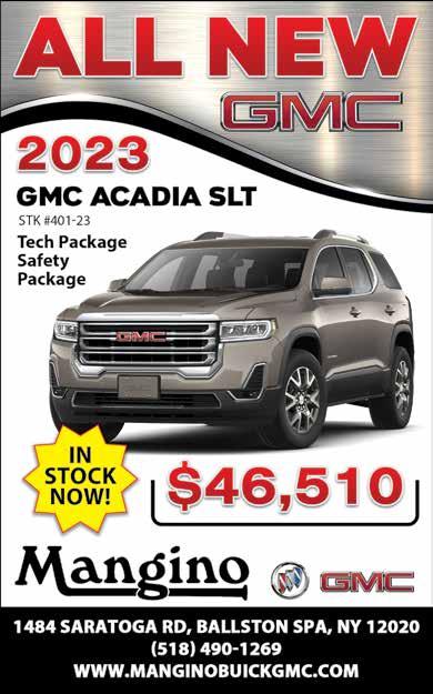 30 Week of August 19 – August 25, 2022 AUTO DONATIONS Drive Out Breast Cancer: Donate a car today! The benefits of donating your car or boat: Fast Free Pickup - 24hr Response Tax Deduction - Easy To Do! Call 24/7: 855-905-4755 Wheels For Wishes benefiting Make-A-Wish® Northeast New York. Your Car Donations Matter NOW More Than Ever! Free Vehicle Pick Up ANYWHERE. We Accept Most Vehicles Running or Not. 100% Tax Deductible. Minimal To No Human Contact. Call: (877) 798-9474. Car Donation Foundation d/b/a Wheels For Wishes. wheelsforwishes.org. TV INTERNET PHONE BEST SATELLITE TV with 2 Year Price Guarantee! $59.99/mo with 190 channels and 3 months free premium movie channels! Free next day installation! Call 888-508-5313 DISH TV $64.99 For 190 Channels + $14.95 High Speed Internet. Free Installation, Smart HD DVR Included, Free Voice Remote. Some restrictions apply. Promo Expires 1/21/23. 1-888-609-9405 DIRECTV for $79.99/mo for 12 months with CHOICE Package. Watch your favorite live sports, news & entertainment anywhere. First 3 months of HBO Max, Cinemax, Showtime, Starz and Epix included! Directv is #1 in Customer Satisfaction (JD Power & Assoc.) Some restrictions apply. Call 1-888-534-6918 CLASSIFIED CALL 518-581-2480 EXT. 204 It’s YOUwhereto be. NEED MARKETPLACE CLASSIFIED@SARATOGA PUBLISHING .COM AD RESERVATIONSPACEDUE: Monday | 5 p.m. AD COPY DUE: Wednesday | Noon Publication Day: Friday PLACE CLASSIFIEDYOURADTODAY!PHONE: 518-581-2480 ext. 204 EMAIL: saratogapublishing.comCLASSIFIED@2254Route50SouthSaratogaSprings REAL ESTATE FOR RENT STRONG AS STEEL WITH THE ATTRACTIVE LOOK OF VARIOUS ROOF STYLES Upgrade Your Home with a NEW METAL ROOF Guaranteed to Last a Lifetime! From Dimensional Shingles to classic styles reminiscent of Cedar Shake and Spanish Tile, an architectural roo ng system by Erie Metal Roofs can enhance the beauty of your home while protecting your family and property for a lifetime. Call today to schedule your FREE ESTIMATE 1-855-492-6084 Made in the USA New orders only. Does not include material costs. Cannot be combined with any other offer. Minimum purchase required. Other restrictions may apply. This is an advertisement placed on behalf of Erie Construction Mid-West, Inc (“Erie”). Offer terms and conditions may apply and the offer may not be available in your area. Offer expires December 31, 2022. If you call the number provided, you consent to being contacted by telephone, SMS text message, email, pre-recorded messages by Erie or its affiliates and service providers using automated technologies notwithstanding if you are on a DO NOT CALL list or register. Please review our Privacy Policy and Terms of Use on homeservicescompliance.com. All rights reserved. LIMITED TIME OFFER 60% off TAKE AN ADDITIONAL 10 % off YOUR INSTALLATION Install for Military, Health Workers and First Responders + Warranty- Limited Lifetime. Transferable to 1 subsequent owner from original purchaser. Terms and conditions apply. Hail up to 2.5”, Appearance of the surface coating beyond normal wear and tear. Limited time offer. Expires 12.31.22 REQUEST A FREE QUOTE CALL NOW BEFORE THE NEXT POWER OUTAGE (877) 516-1160 todayoutagesforPreparepower WITH A STANDBYHOMEGENERATOR $0 MONEY DOWN + LOW MONTHLY PAYMENT OPTIONS Contact a Generac dealer for full terms and conditions *To qualify, consumers must request a quote, purchase, install and activate the generator with a participating dealer. Call for a full list of terms and conditions. FREE 7-Year Extended Warranty* – A $695 Value! Promo Code: 285285 FINANCING THAT FITS YOUR BUDGET!1 Subject to credit approval. Call for details. THENATION GUTTER GUARD1 EXCLUSIVE LIMITED TIME OFFER! TO THE FIRST 50 CALLERS ONLY! SENIORS MILITARY!&YOUR PURCHASEENTIRE & + 5 1015%% % OFFOFF OFF WE YEAR-ROUND!INSTALL Mon-Thurs: 8am-11pm, Fri-Sat: 8am-5pm, Sun: 2pm-8pm EST BACKED BY A YEAR-ROUND CLOG-FREE GUARANTEE *For those who qualify. One coupon per household. No obligation estimate valid for 1 year. **Offer valid at time of estimate only The leading consumer reporting agency conducted a 16 month outdoor test of gutter guards in 2010 and recognized LeafFilter as the “#1 rated professionally installed gutter guard system in America.” CSLB# 1035795 DOPL #10783658-5501 License# 7656 License# 50145 License# 41354 License# 99338 License# 128344 License# 218294 WA UBI# 603 233 977 License# 2102212986 License# 2106212946 License# 2705132153A License# LEAFFNW822JZ License# WV056912 License# WC-29998-H17 Nassau HIC License# H01067000 Registration# 176447 Registration# HIC.0649905 Registration# C127229 Registration# C127230 Registration# 366920918 Registration# PC6475 Registration# IR731804 Registration# 13VH09953900 Registration# PA069383 Suffolk HIC License# 52229-H License# 2705169445 License# 262000022 License# 262000403 License# 0086990 Registration# H-19114 1-855-478-9473CALL US TODAY FOR A FREE ESTIMATE HOME IMPROVEMENT ELIMINATE GUTTER CLEANING FOREVER! LeafFilter, the most advanced debris-blocking gutter protection. Schedule a FREE LeafFilter estimate today. 15% off and 0% financing for those who qualify. PLUS Senior & Military Discounts. Call 1-877-763-2379 Never Pay For Covered Home Repairs Again! Complete Care Home Warranty COVERS ALL MAJOR SYSTEMS AND APPLIANCES. 30 DAY RISK FREE. $200.00 OFF + 2 FREE Months! 866-440-6501 BATH & SHOWER UPDATES in as little as ONE DAY! Affordable prices - No payments for 18 months! Lifetime warranty & professional installs. Senior & Military Discounts available. Call: 866-393-3636 Do you need a Roof or Energy Efficient Windows & Help paying for it? YOU MAY QUALIFY THROUGH NEW RELIEF PROGRAMS (800) 944-9393 or visit NYProgramFunding.org to qualify. Approved applications will have the work completed by a repair crew provided by: HOMEOWNER FUNDING. Not affiliated with State or Gov Programs. FINANCE ARE YOU BEHIND $10k OR MORE ON YOUR TAXES? Stop wage & bank levies, liens & audits, unfiled tax returns, payroll issues, &