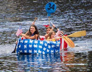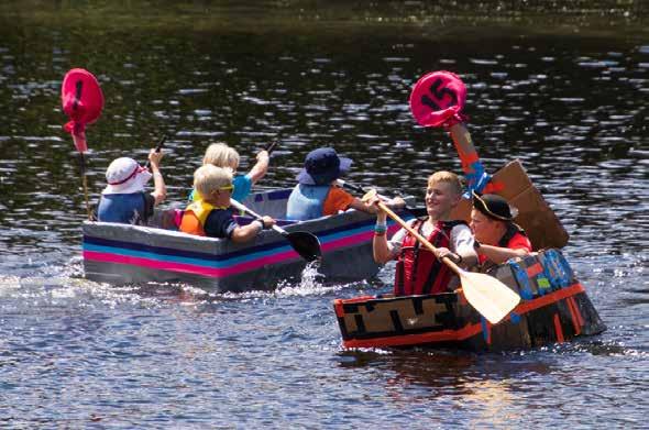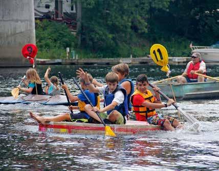 SCHUYLERVILLE — On Saturday, August 13, the Hudson Crossing Park in Schuylerville hosted the 16th annual Cardboard Boat Races. Held every year at Fort Hardy Park in Schuylerville, the Cardboard Boat Race is a fun and creative community day on the HudsonTheRiver.goal is simple - partici pants of all ages are tasked with building a boat made out of pre viously agreed upon materials, in this case corrugated cardboard, plastic or wooden brooms, duct tape, caulk and/or glue and nonoil-based paint (for style). The day is broken up by different age groups and categories and awards are handed out after the races. The awards include: first place, second place and third place for speed, the Titanic Award, Most Enthusiastic Crew, Judges Bribe Award (“Bribes” are considered donations to Hudson Crossing Park), People’s Choice, Overall Best in Show, and Most Sailors Left Importantly,Afloat.thisday of fun is put on by Hudson Crossing Park whose mission is to tie environ mental responsibility to economic revitalization, and to engage people of all ages in making informed choices for a sustain able future. To learn more about the Cardboard Races or for more upcoming events at the park, www.hudsoncrossingpark.org.visit:
